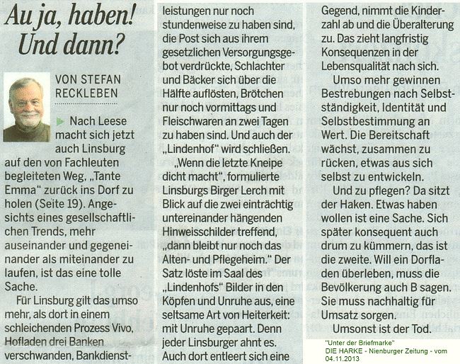 DIE HARKE - Nienburger Zeitung - hat in einem Artikel und in einer Kolumne über dieses Ereignis berichtet: