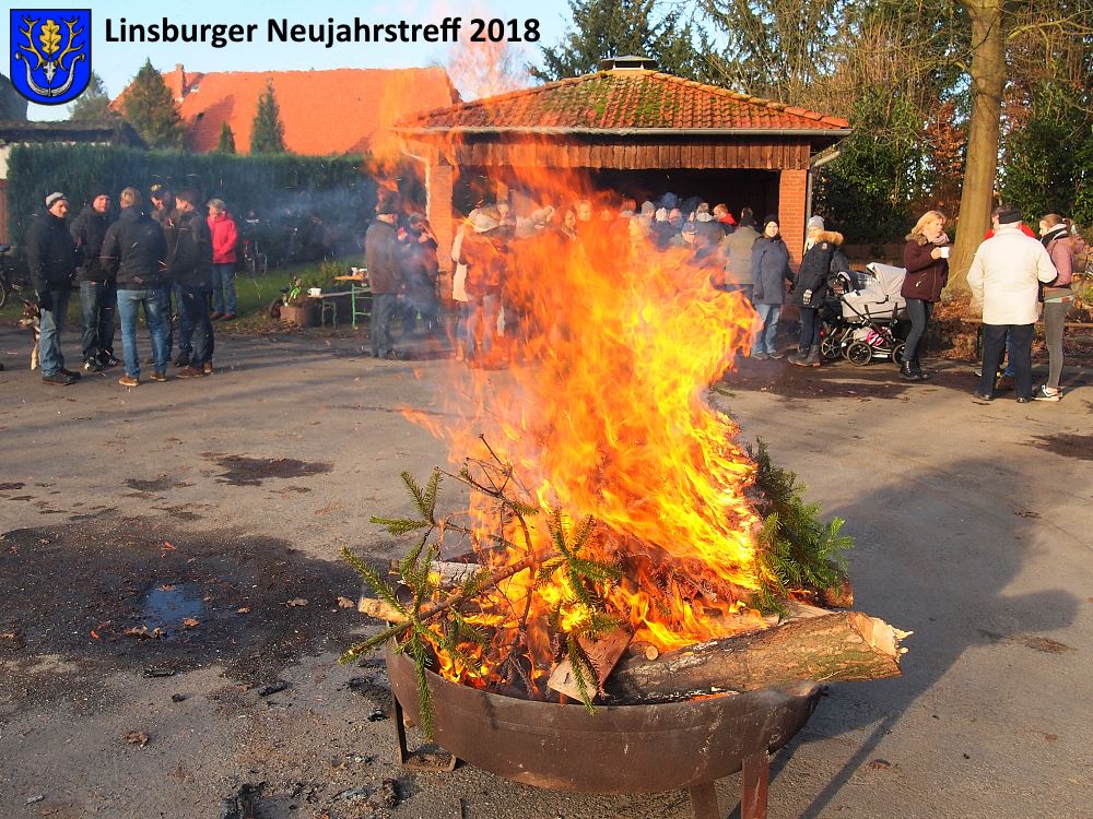 Ganz ungewohnt bei bestem Sonnenwetter und angenehm kalter Temperatur fand am ersten Sonntag des Jahres der langsam zur Tradition werdende "Neujahrstreff mit Weihnachtsbaum-Verbrennen" in der Gemeinde Linsburg statt. Circa 70 Einwohnerinnen und Bürger waren der Einladung des Gemeinderates gefolgt, um sich bei kalten und warmen Getränken "mit und ohne" sowie schmackhaften Bratwürsten unter freiem Himmel auf dem Platz vor der Linsburger Feuerwehr zu treffen. Intensive Diskussionen rund um\'s Dorf mit Schwerpunkt Dorfladen und Dorfgemeinschaftshaus prägten die diversen Gesprächsrunden. Die Damen und Herren des Gemeinderates hatten alle Hände voll zu tun, um die Wünsche ihrer Gäste nach Speis und Trank zu erfüllen.