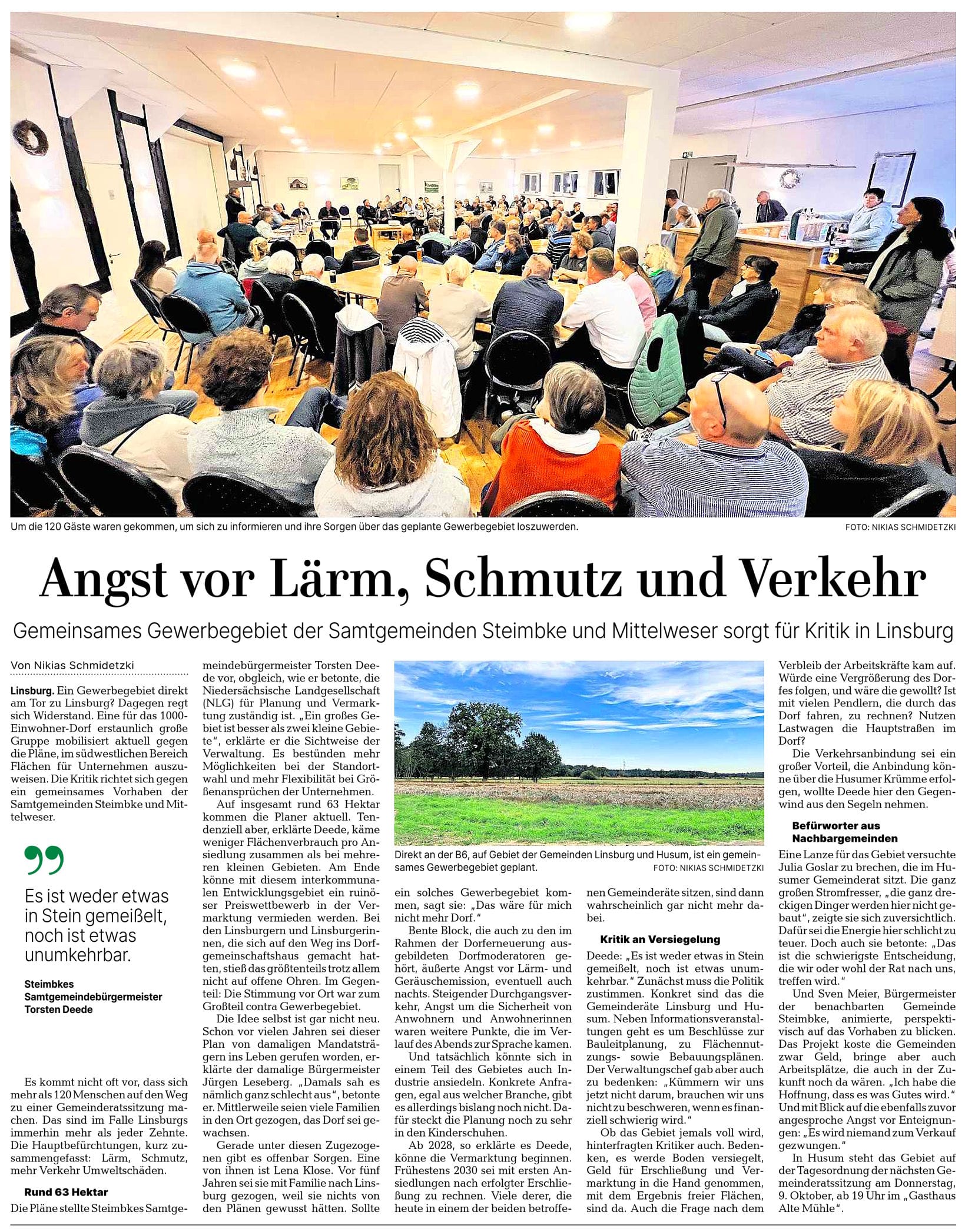 Lesen Sie auch den Artikel in DIE HARKE - Nienburger Zeitung - vom 21. März 2024 "Angst vor Lärm, Schmutz und Verkehr".