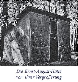 Nachdem das Königreich Hannover mit Ernst August seit 1837 wieder einen eigenen König hatte, ließ dieser im Grinderwald fast jedes Jahr große Wildschweinjagden ausrichten. Diese wurden jetzt als eingestellte Jagden ausgeführt, das heißt, mit einem großen Aufwand an Leuten und Hunden trieb man das Wild der ganzen Gegend in einem bestimmten Waldstück zusammen. Dort hinderte man das Wild mit Netzen und an Seilen aufgehängten Lappen, dem sogenannten „Hohen Jagdzeug", am Ausbrechen, doch manchmal ging doch ein Stück „durch die Lappen". Dieses Zusammentreiben dauerte oft mehrere Tage und aus allen Dörfern mußten Männer dabei mithelfen. Am Tage vor der eigentlichen Jagd trieb man das Wild dann in eine Art Gatter mit einem festen Zaun. Nun reiste der König an und ließ das Wild nacheinander durch den sogenannten „Lauf" an seinem Platz, den man auch „Stand" nannte, in der Nähe des Gatters vorbei treiben. Nun schoß der König nacheinander die stärksten Stücke ab, ihm standen dafür zwei Gewehre zur Verfügung, die ihm sein Büchsenspanner immer neu geladen von hinten zureichte. Aus heutiger Sicht eine makabere Jagdart, eher ein Abschlachten. Doch damals dachte sich niemand etwas dabei, und zur Erinnerung an zwei dieser Jagden in den Jahren 1843 und 45 brachte man an dem von Ernst August benutzten Unterstand, der heutigen Ernst August Hütte, eine Gedenktafel an.